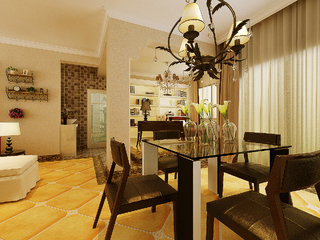 恒盛皇家花园装修的这个案例在配饰上,金黄色和棕色的配饰衬托出古典家具的高贵与优雅,赋予古典美感的窗帘和地毯、造型古朴的吊灯使整个空间看起来赋予韵律感且大方典雅,柔和的浅色花艺为整个空间带来了柔美的气质,给人以开放、宽容的非凡气度,让人丝毫不显局促。